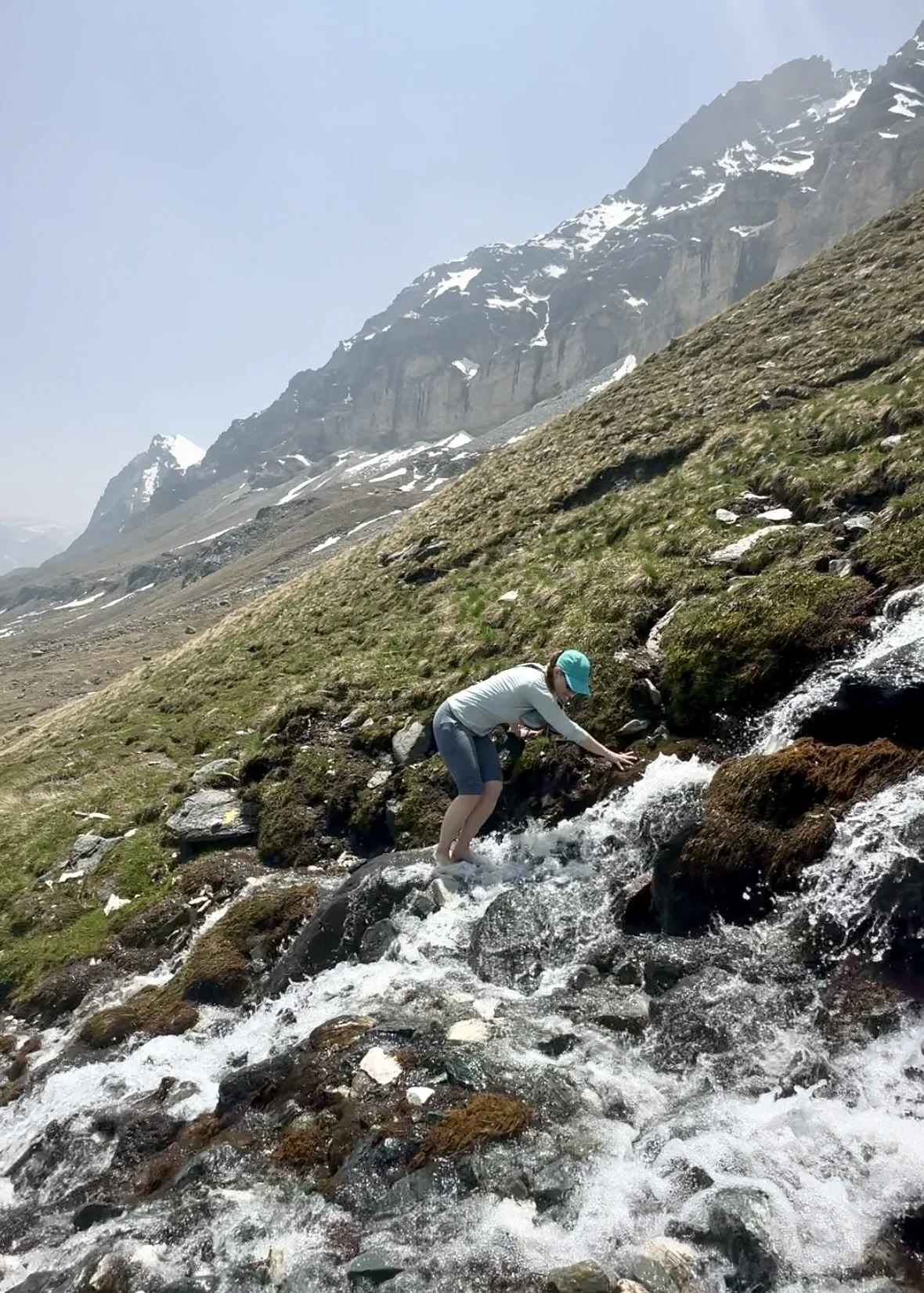 Excuse me? Barefoot across glacial water rushing down a steep mountain? Absolutely not. I sat crouched on a rock, watching him cross, waiting for my stubbornness to make another path materialize.